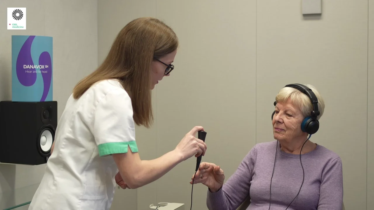 Avdiometristka vam namesti slušalke in predvaja tone — vi pritisnete gumb vsakič, ko zvok zaslišite. Rezultat je avdiogram, ki natančno pokaže, katere frekvence slišite in kje je morebitna izguba.